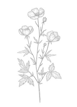 Historical Vector Illustration Of Buttercup Flowers Outlined Version By Picsburg 603